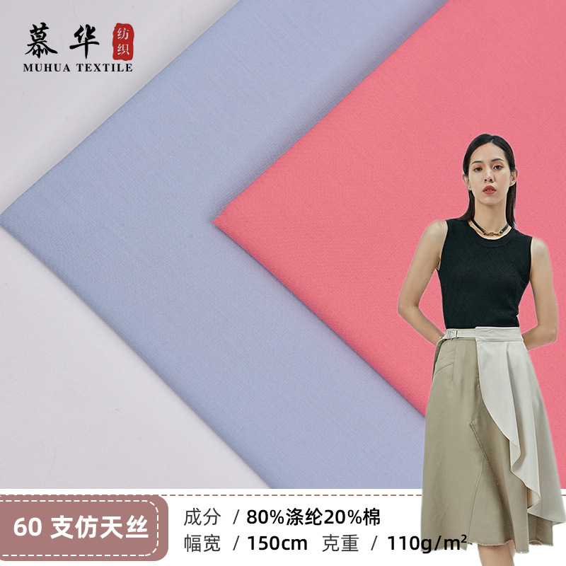 在庫あり 60 カウントポリエステル綿模造テンセル生地高密度無地 TC ポプリン春と夏のシャツドレス生地卸売