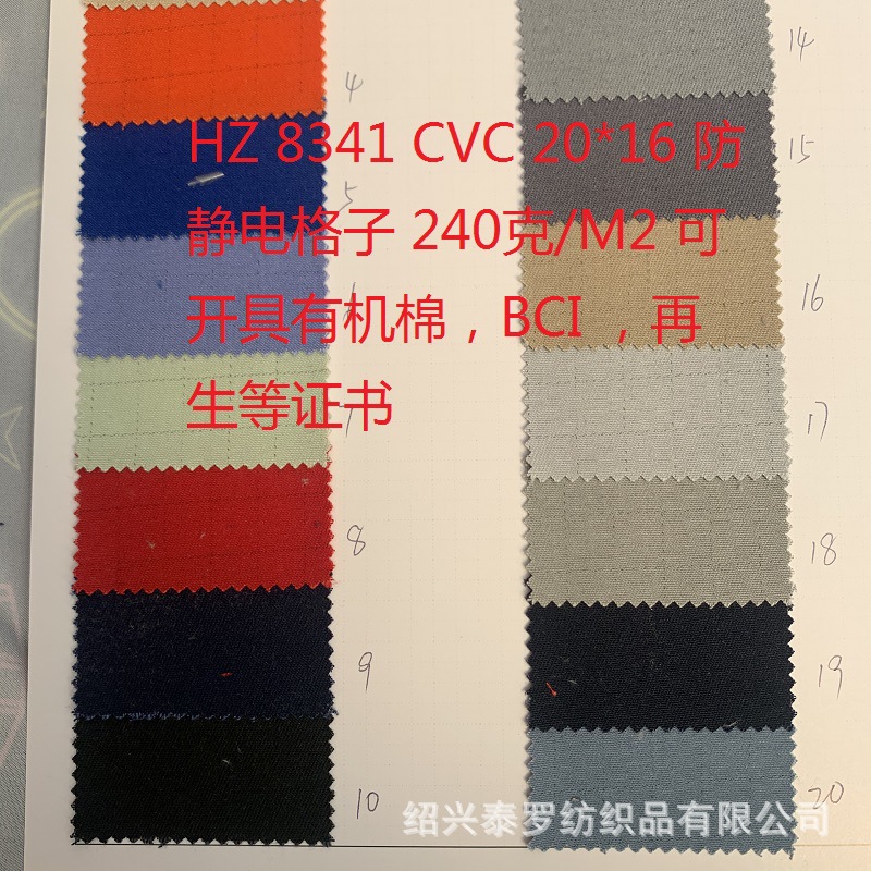 ポリエステル綿工装制服静電気防止格子生地cvc綾糸カードは再生有機綿生地を発行することができる