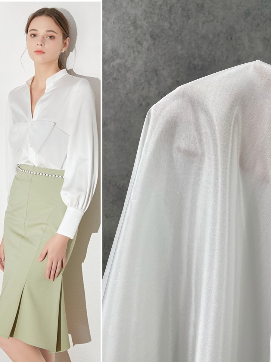 光沢感のある白いシャツ生地には、光沢のある綿のシルク生地があります。
