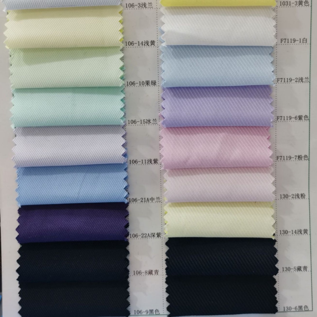既製品40Sポリエステル綿混紡生地、無地染めシャツ生地、アイロンがけしやすい制服シャツ生地卸売