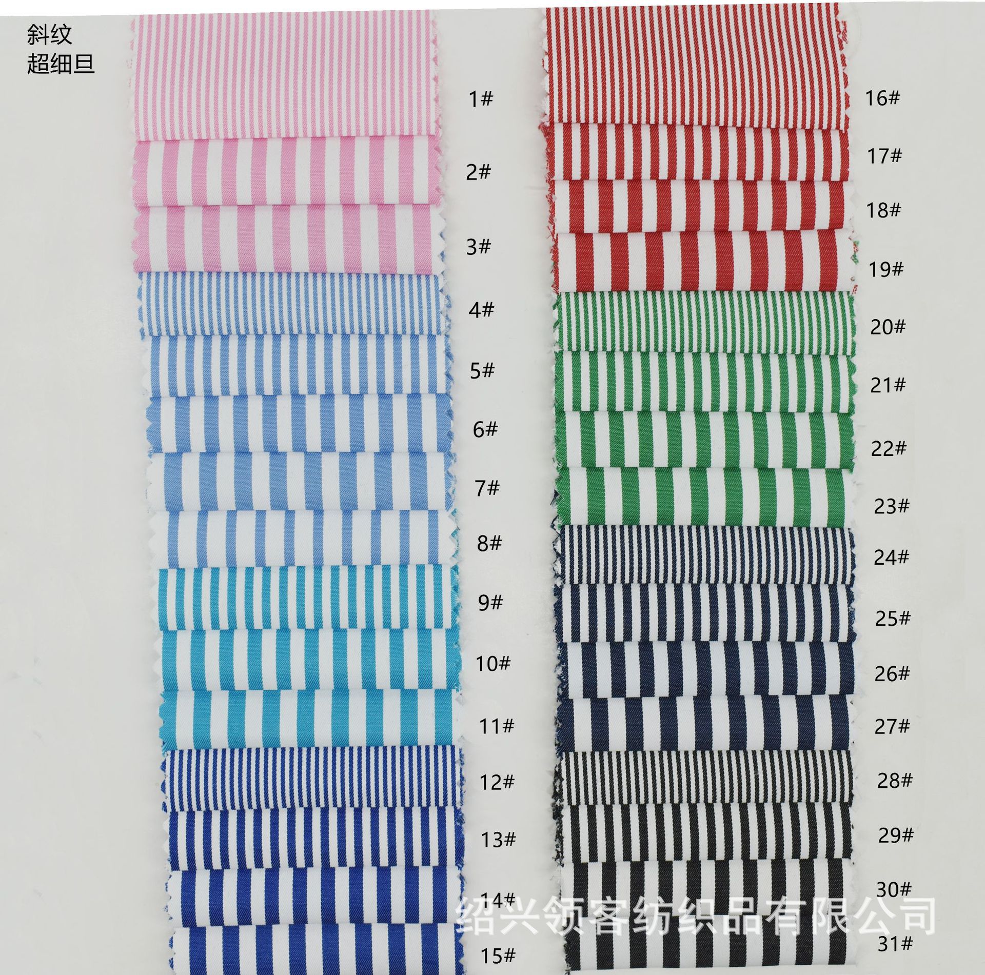 現物の全ポリエステルの色の織り目の経典の綾の条の工装のシャツの布のポケットの布の中の生地は色の布を挿します
