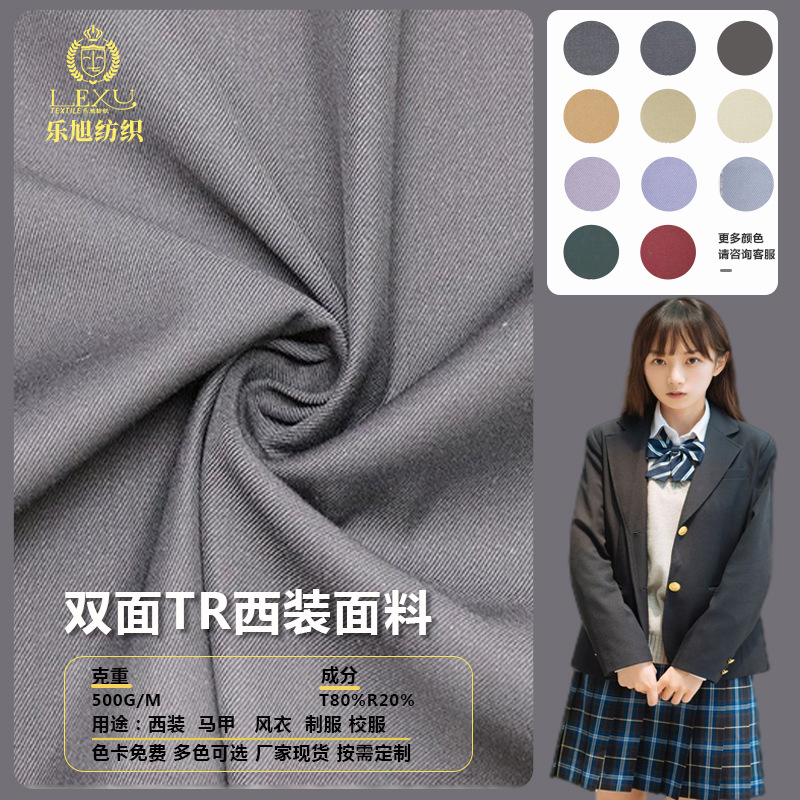 Tr生地500グラムスーツ生地セーラー服両面ラフツイルjkユニフォームプリーツスカート生地メーカー