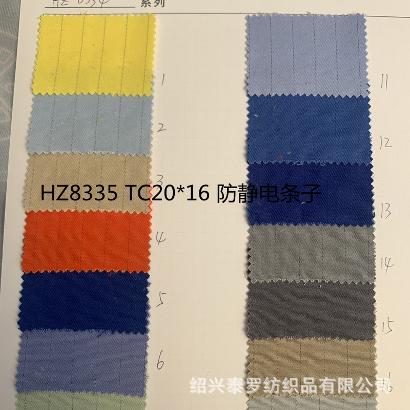 ポリエステル綿工装制服静電気防止条生地tc綾織り糸カードは再生有機綿生地を発行することができる