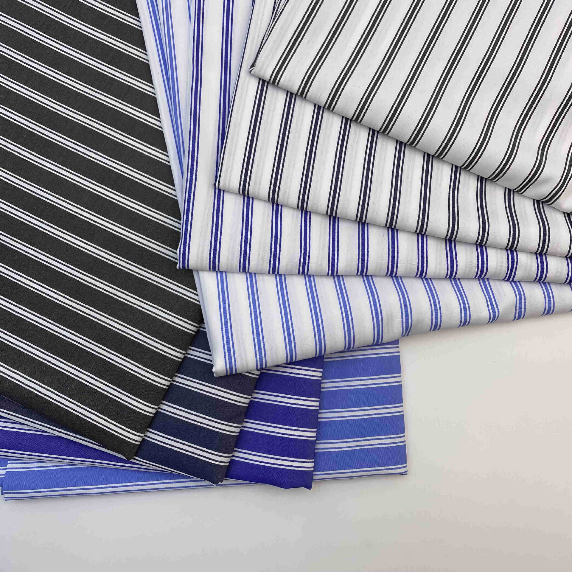 45本のポリエステル綿の色織りのストライプの生地の新型の秋のシンプルな家庭服の作業服のシャツの布帛の卸売りの布