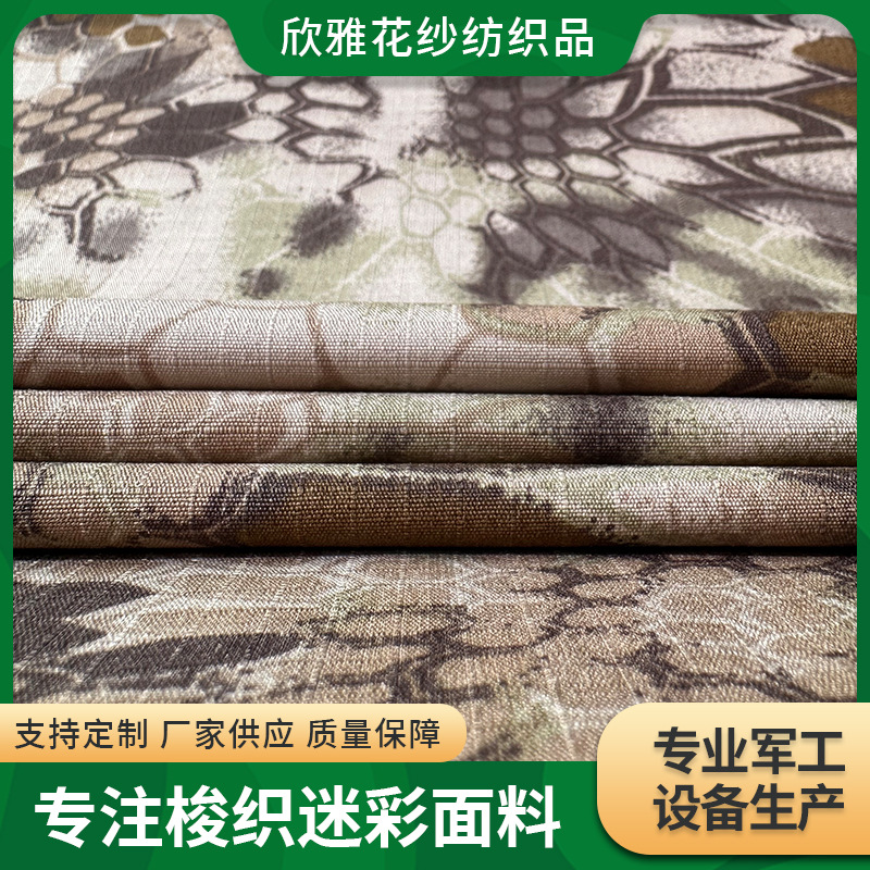 メーカー直供軍迷戸外服ポリエステル綿混紡防水引き裂き防止格子迷彩布面