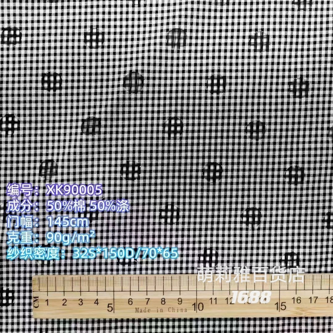 現物黒色砕花布ポリエステル綿方眼布色織プリント生地夏服ストラップワンピース半袖生地