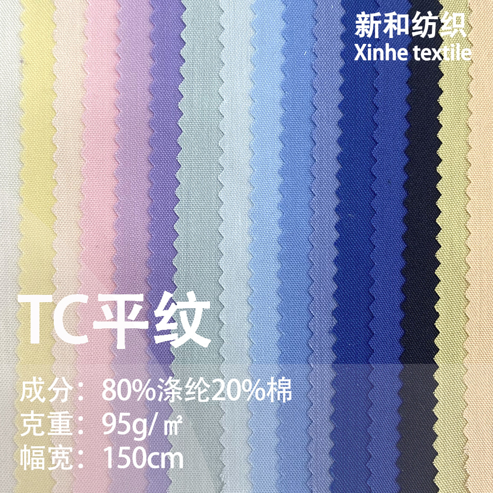 スポットポリエステル綿無地マルチカラーtcシャツ生地男女学生服ノンアイロン抗シワシャツドレス生地
