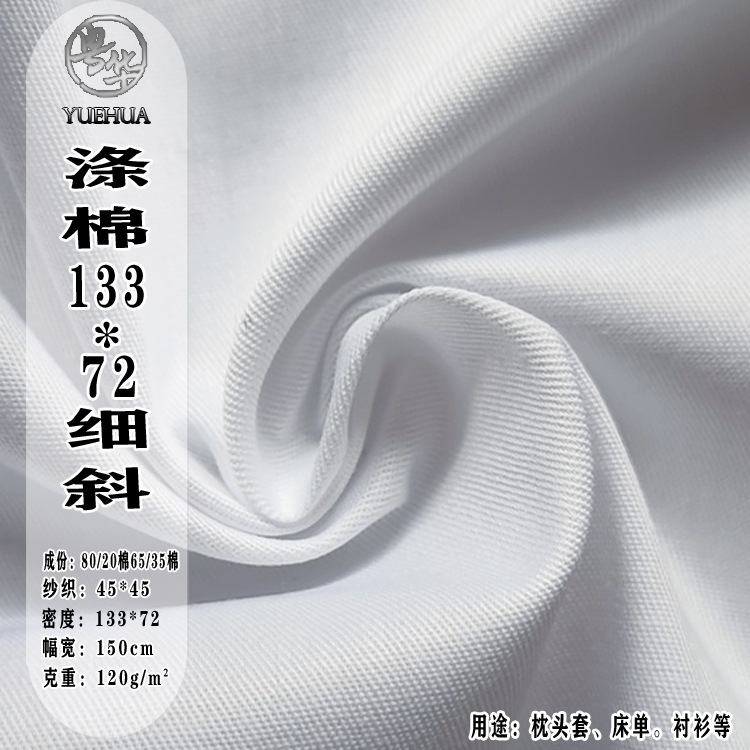 ポリエステル綿13372ツイルtc 120g春夏45本シャツ枕カバーシーツ生地漂白半漂白生地