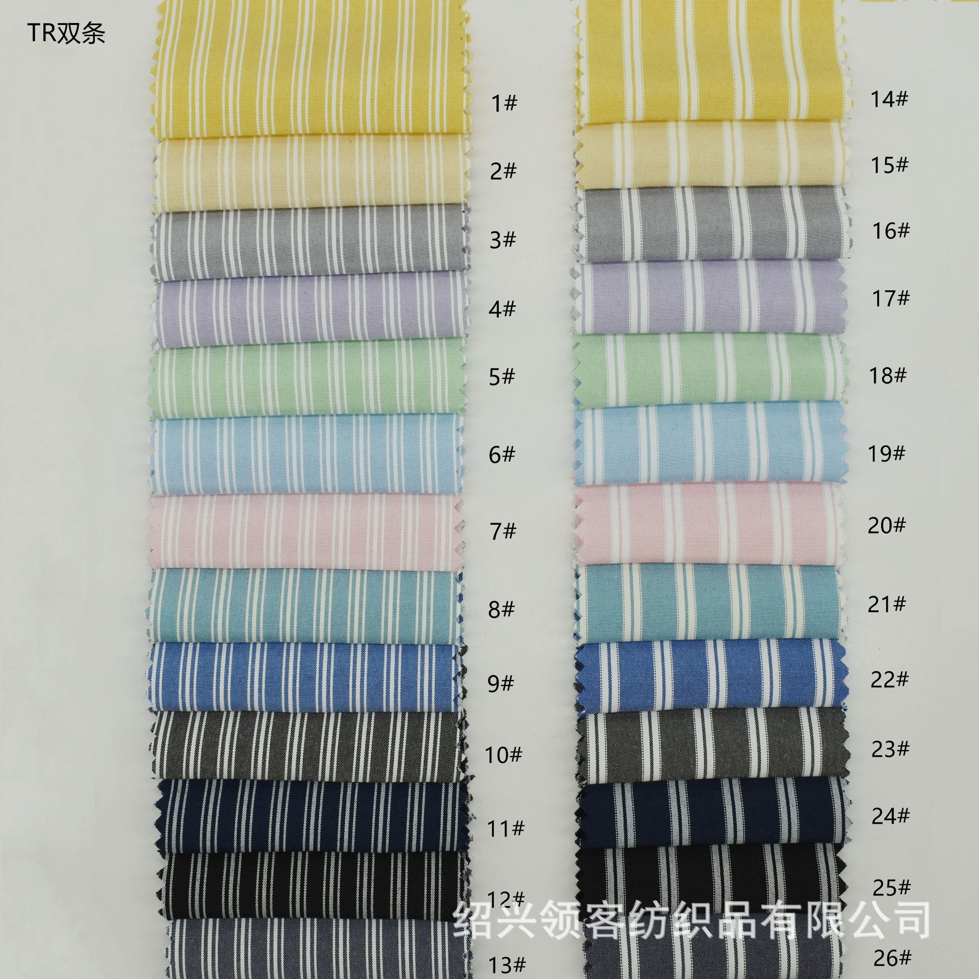 現物ポリエステル綿tc平織り条子工装シャツ生地春夏薄い色織布