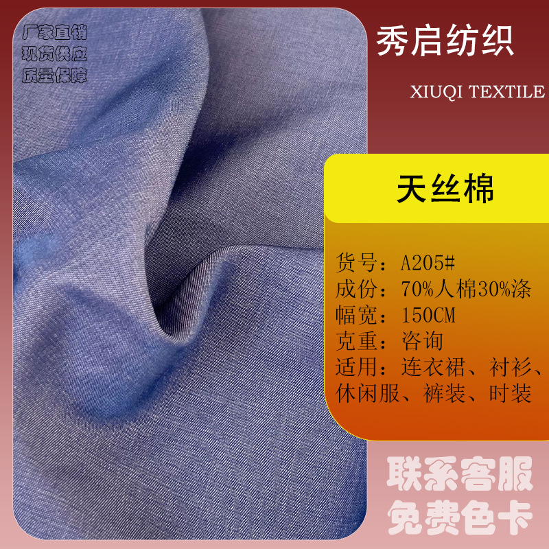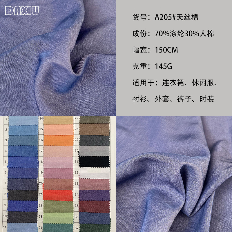 春夏のシルクコットン生地ポリエステル綿混紡模造テンセル綿柔らかい肌に優しいシャツとパンツファッショナブルな婦人服生地