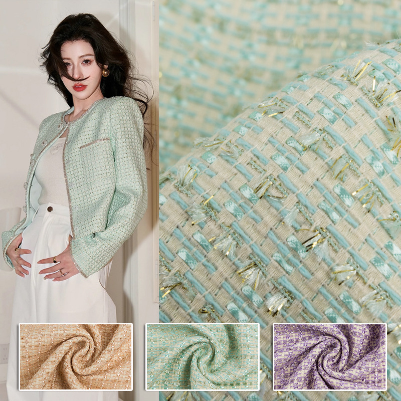 2025 新作春と秋のミントグリーンフレンチスタイル生地エレガントなツイードジャケット A ラインスカート生地