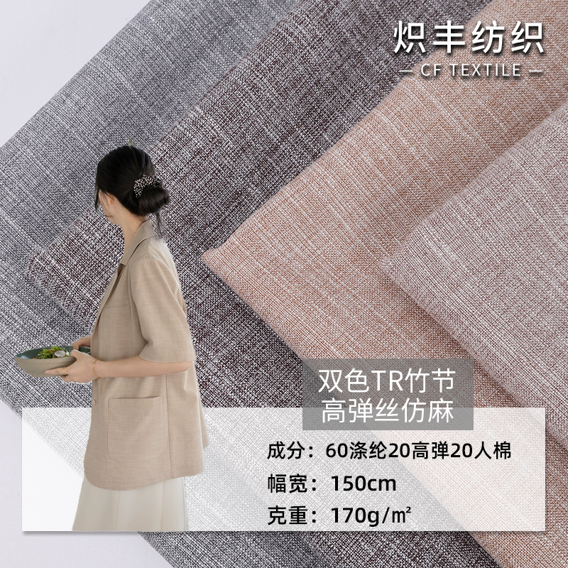 メーカー直送 2505 2色TR竹高弾性シルクイミテーションリネン春夏快適パンツ素材スカート服生地