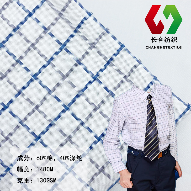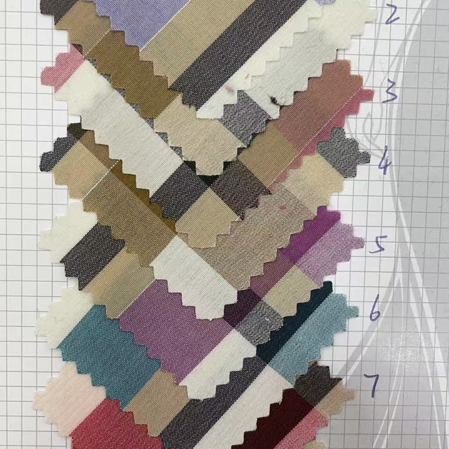ポリエステル綿先染めストライプチェック柄生地、シャツ生地、裏地生地、チェック柄ストライプ生地の在庫供給