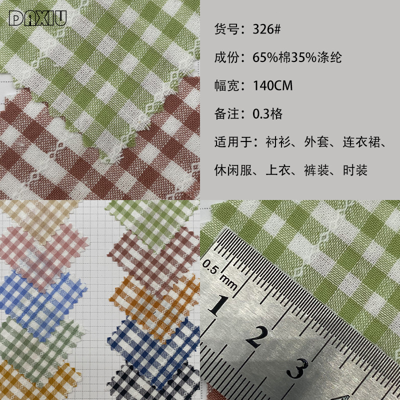 0.3 ミリメートル綿ポリエステル先染めチェック柄ジャカード生地春と夏の通気性ファッション子供服シャツドレススカーフ生地