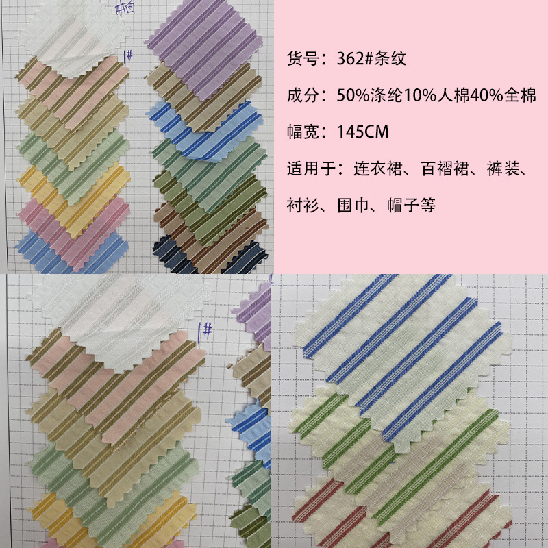工場直販先染めストライプ生地ポリエステル綿ストリップ生地春夏売れ筋婦人服子供服シャツ生地