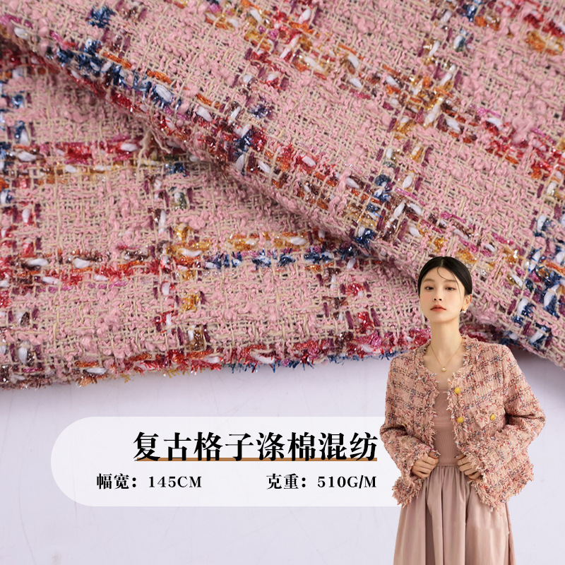 レトロな格子のポリエステル綿の混紡の小さい香風の生地の秋冬は服装のズボンのコートの生地の現物を編みます。