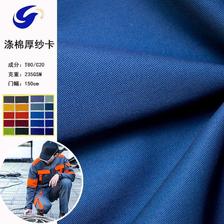 CVC弾力糸カード60綿ポリエステル綿綾作業服工装生地士林染色多色スポット直販