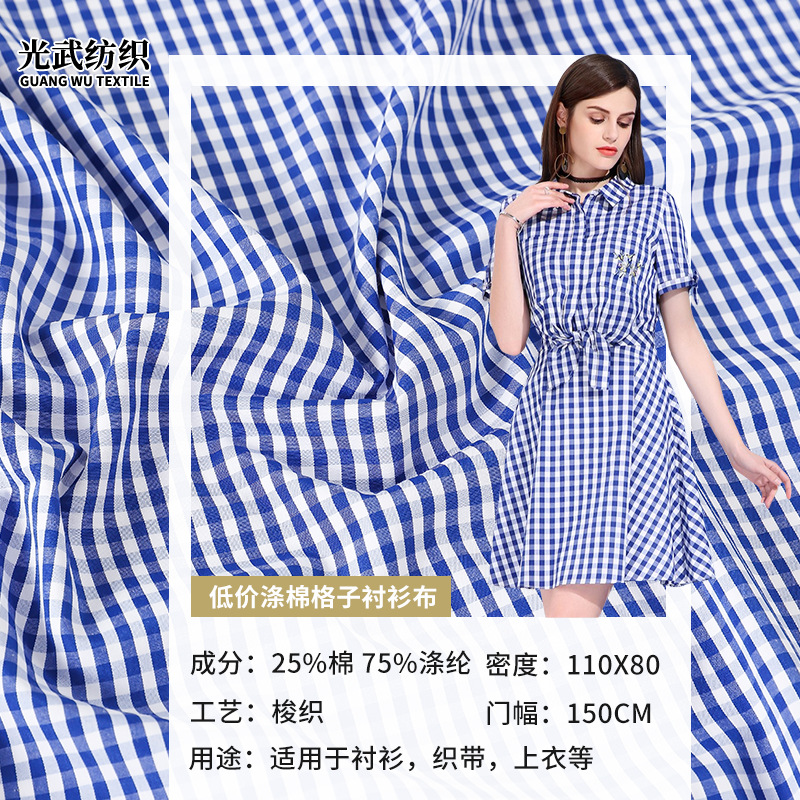 綿ポリエステル弾性破れにくいチェック柄 CVC 3 グリッド作業服制服スーツシャツ生地無料サンプル送信