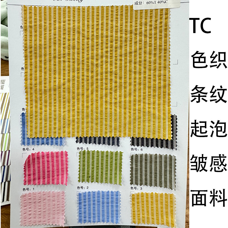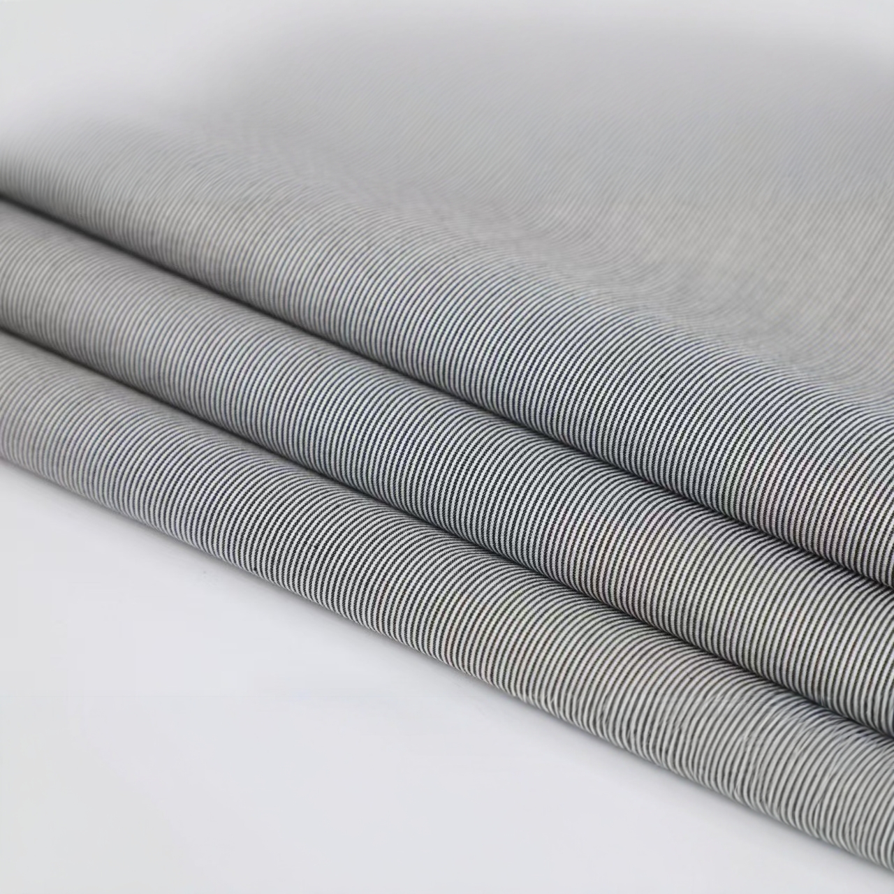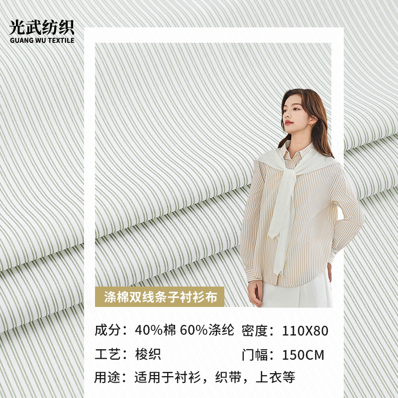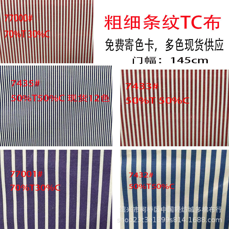 源工場120g春夏ポリエステル綿シャツリボン生地ビジネスカジュアル服二重線縞tc生地卸売り