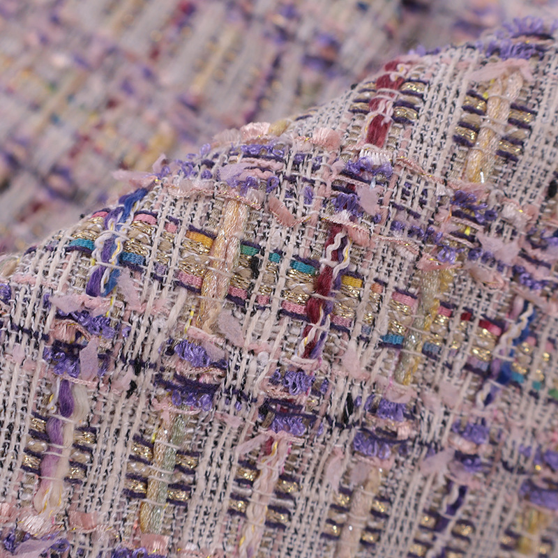 金糸のポリエステル綿の混紡の小さい香風の布地の秋冬の紫色の軽い豪華な花のファッションの上着の布地の大量の現物