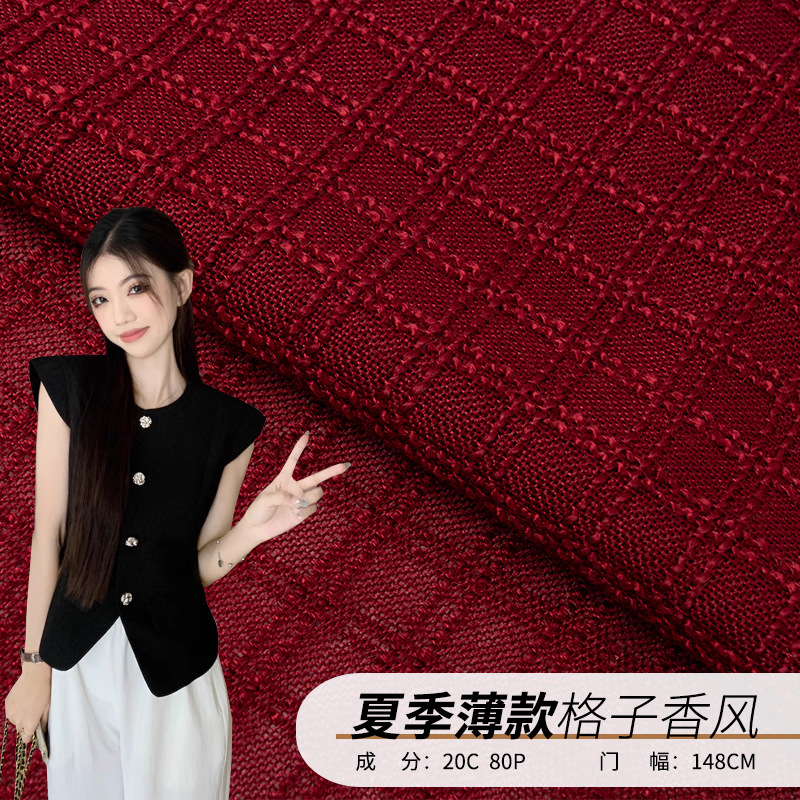 新しい赤色の黒色の暗い格は小さい香ばしい風の粗い花の生地のコートの気質の短い上着の短いコートの布を編みます。