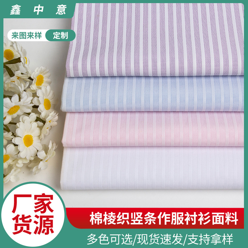ポリエステル綿のうねりの縦の作業服のシャツの生地の120gの色の織のストライプの生地の銀行の仕事の包装の材料