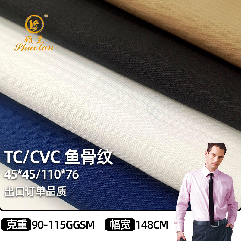 硕兰TC/CVCポリエステル綿混紡45*45ポケット生地フィッシュボーン柄平織り重量90-115Gシャツ作業服