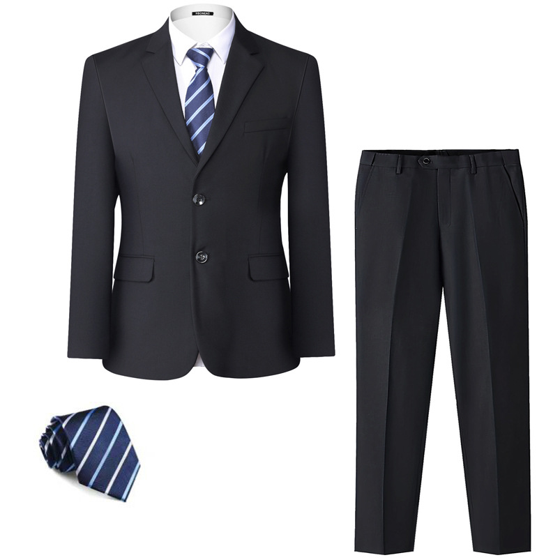 新型男性スーツ職業コートスーツ男性出勤職業服黒チベット青灰色二ボタン正装ズボン