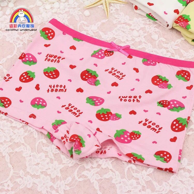 子供の純綿の下着の女の子の4色のかわいいイチゴの子供の綿の平角のズボンの女の子の純綿のズボンの足の小さい花のシリーズ