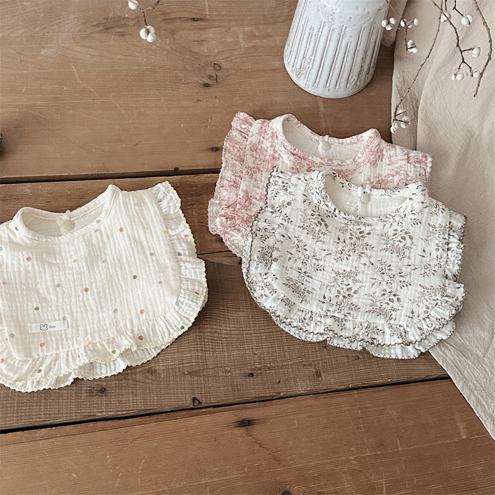 韓国版秋冬新作ベビーよだれかけ新生児用綿ガーゼ防水よだれかけ甘くてシンプルな花柄よだれかけ