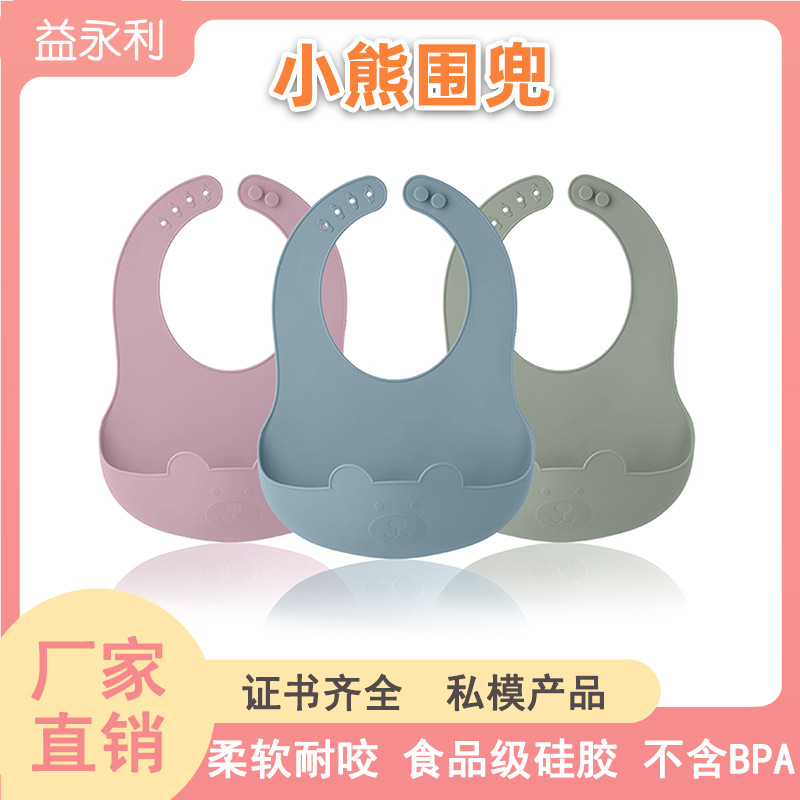 現物卸売りの赤ちゃんの食事の熊のよだれかけの食品級のシリカゲルのよだれ袋の防水の超薄い子供のよだれかけ