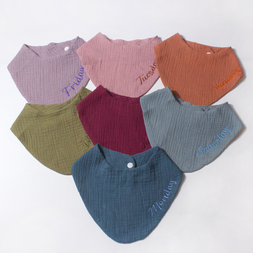 欧米風の赤ちゃんの純色の二重ガーゼのよだれタオルの子供のアルファベットの刺繍のよだれかけの赤ちゃんの三角タオルのよだれかけ