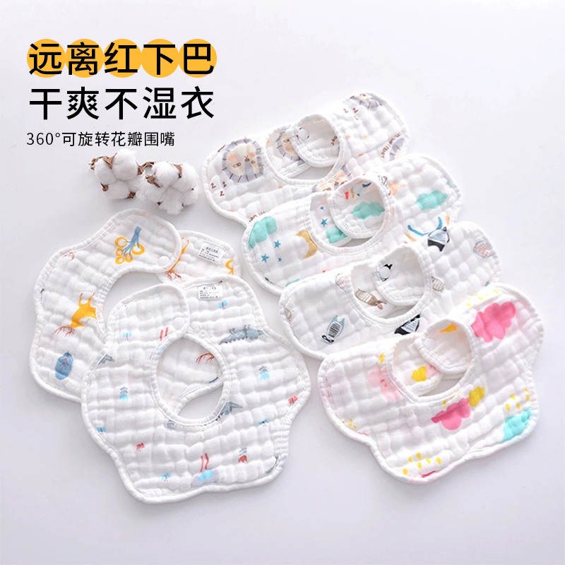 ベビーよだれかけA級8重ガーゼ花びら型よだれかけ漫画プリント子供用よだれかけ回転式サイドオープン