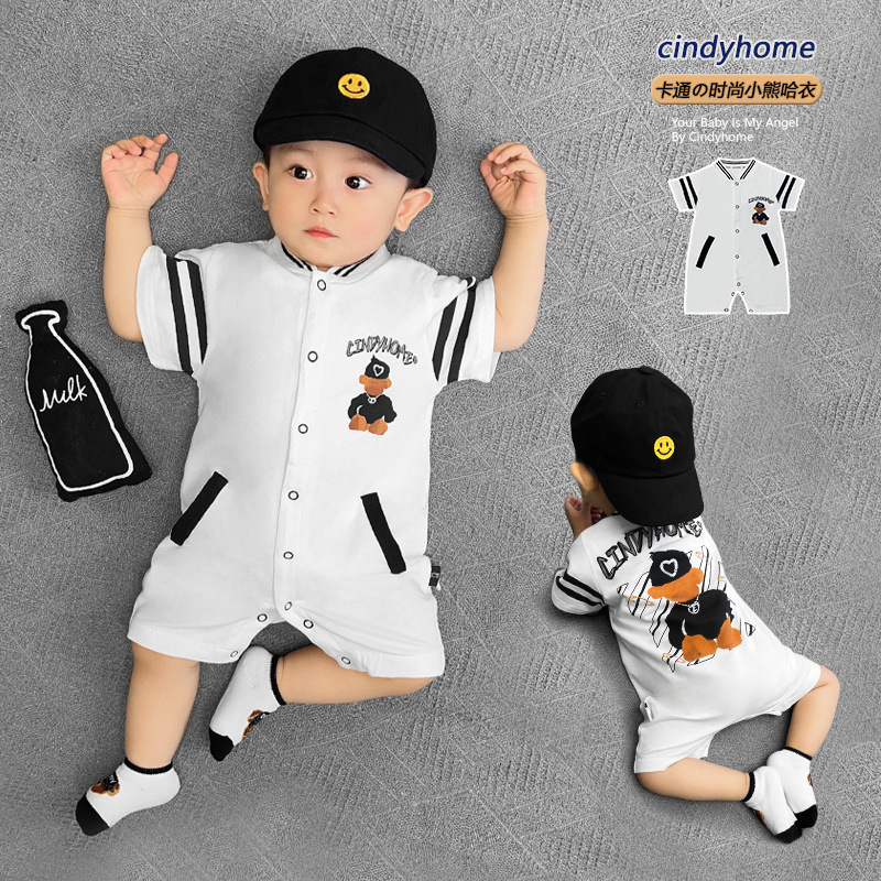 夏超かわいいベビー服、夏薄いかわいいクマのスナップボタンカーディガンジャンプスーツ、ハーレムベビー夏服