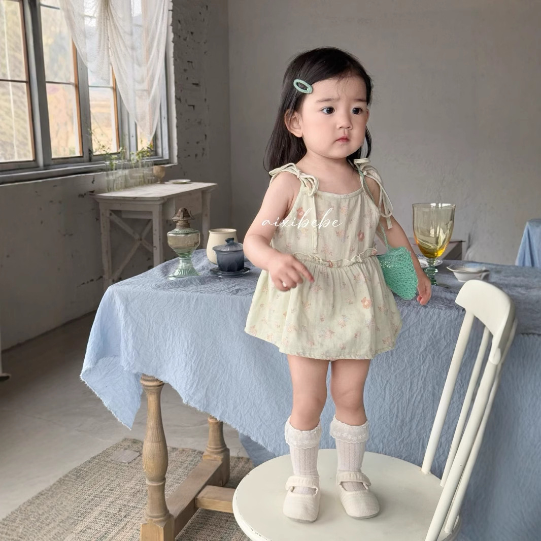 jacinda夏季女童婴幼儿女宝宝韩版碎花小熊吊带包屁连体爬服0173
