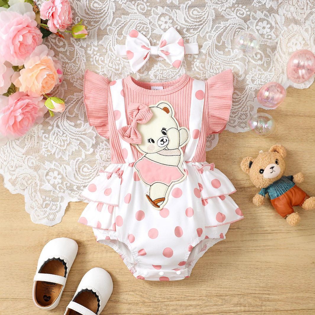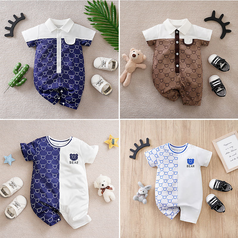 夏用ベビー服、クマの半袖ワンピース、男の子用ベビーアニマル三角ロンパース、おならカバー、2つのお出かけ服