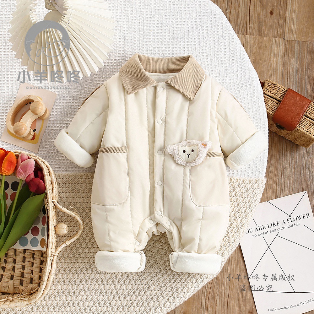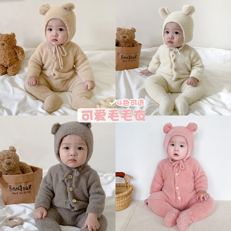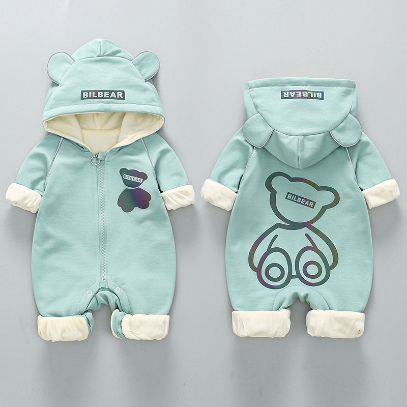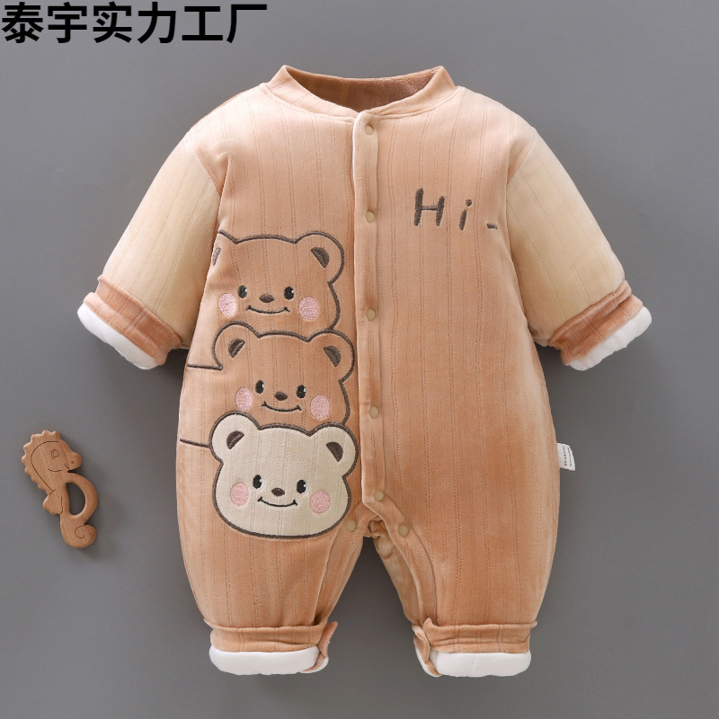 韓国風子供服冬の新作ベビー0-3歳ベルベット厚みのあるダッフィーベアジャンプスーツクローラースーツベビー服