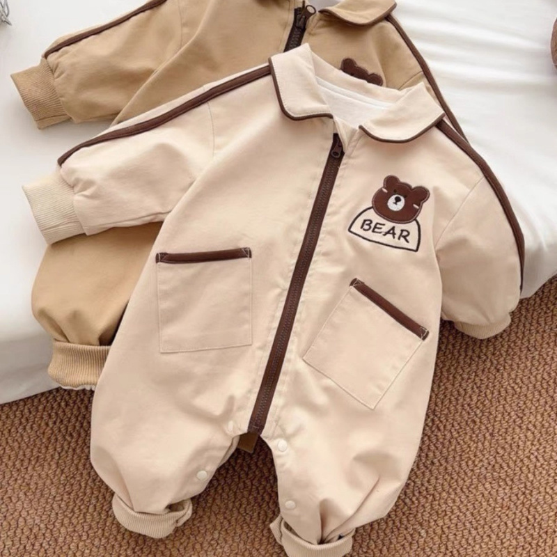 ベビー春秋ジャンプスーツ 男女兼用 春のお出かけ服 かわいい背中クマ