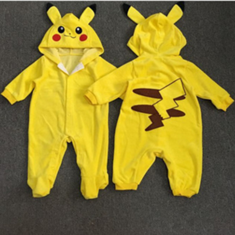爆発的な外国貿易秋冬長袖の赤ちゃんの連体は、ピカチュウの刺繍と帽子をかぶっています。