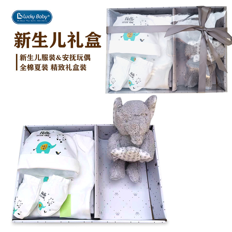 ラッキーベイビー 新生児ギフトセット 赤ちゃん誕生祝い服 人形 帽子 ノースリーブ 多用途