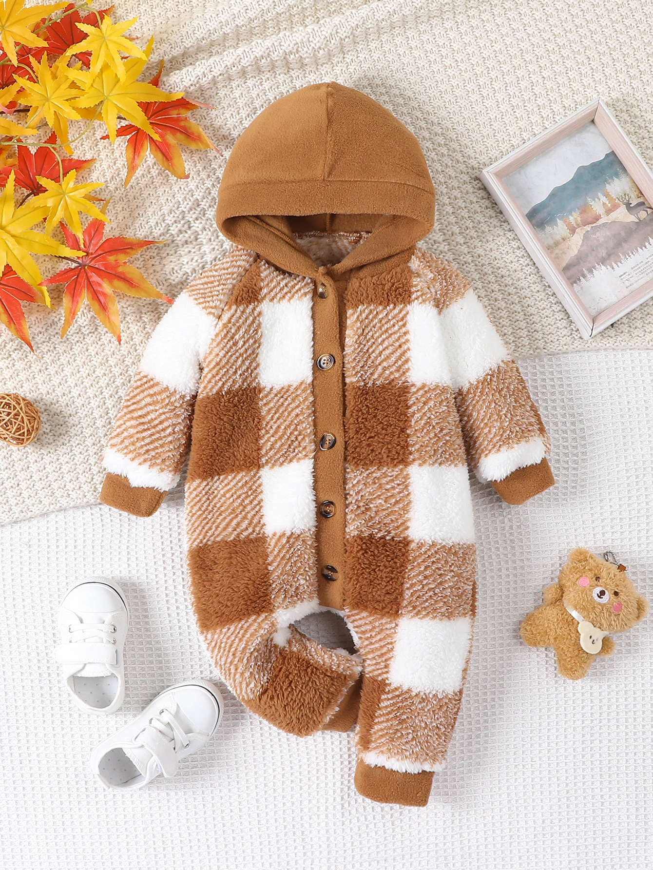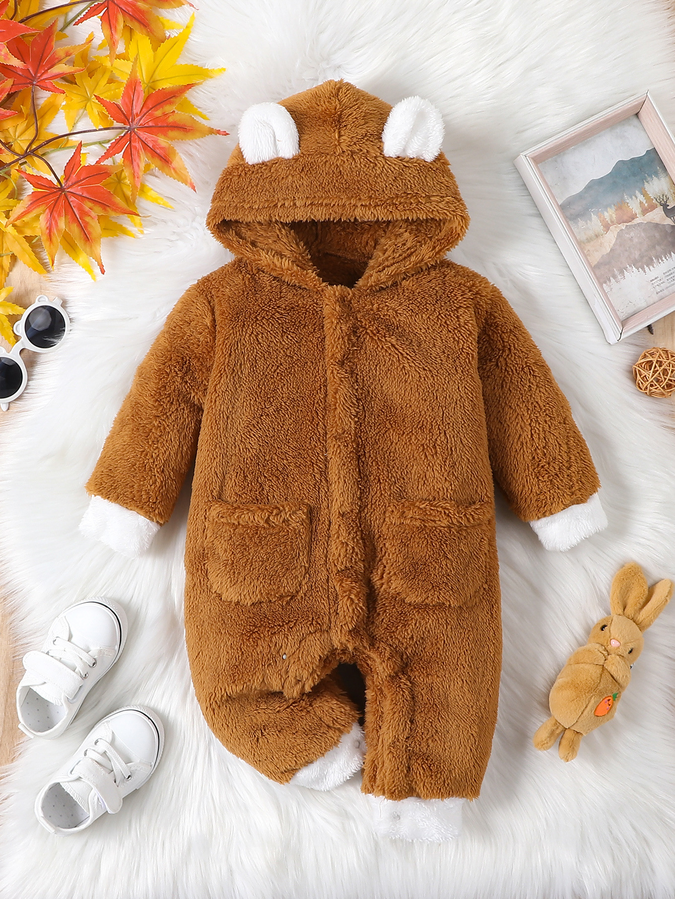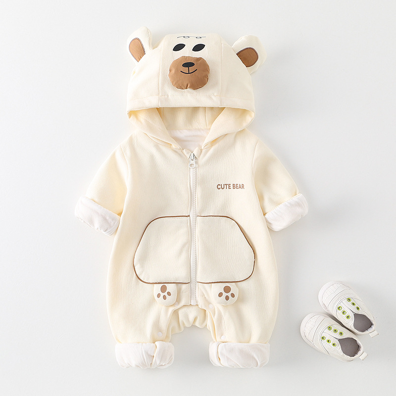 秋冬の赤ちゃんの連体服の二重の厚い帽子の熊の形の赤ちゃんの服のinsは6月の子供服の卸売りに登ります。