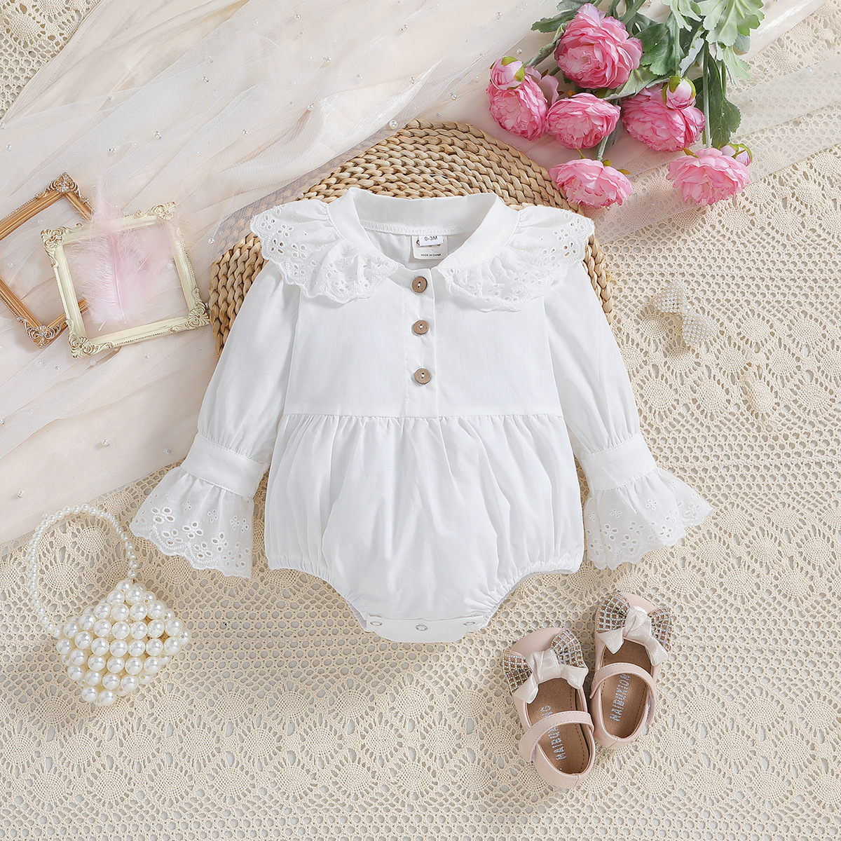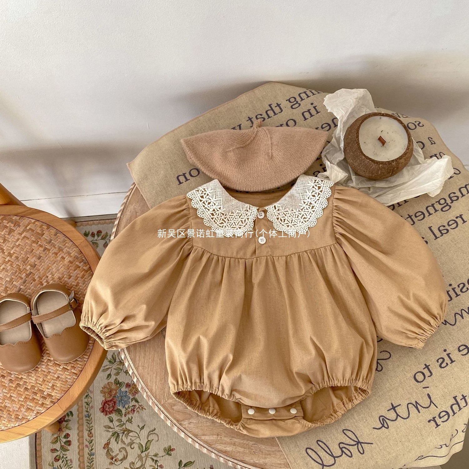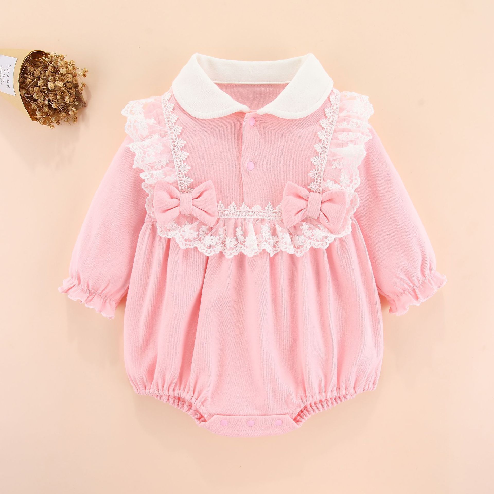 2024 春と秋の服女の赤ちゃん幼児子供レース人形襟ベビー長袖ジャンプスーツ三角クローラー服