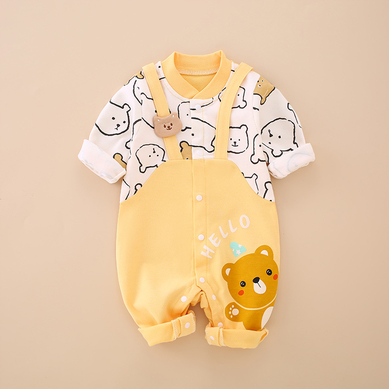 ベビーロンパース春と秋の綿のかわいい赤ちゃんの服秋の長袖の超萌え熊の服