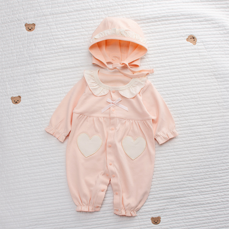 2025 秋の新製品女の赤ちゃんかわいい人形の首輪ウサギの耳カバーアップ新生児純粋な綿のジャンプスーツ