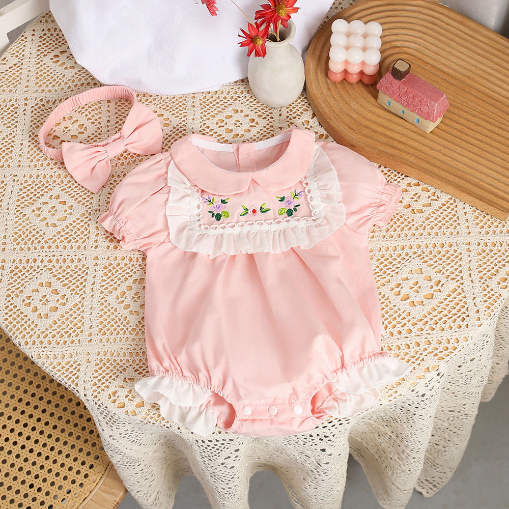Xiongtantan 2024 女の赤ちゃん夏服ピンクベビー服半袖三角クローラー服女の子ジャンプスーツ