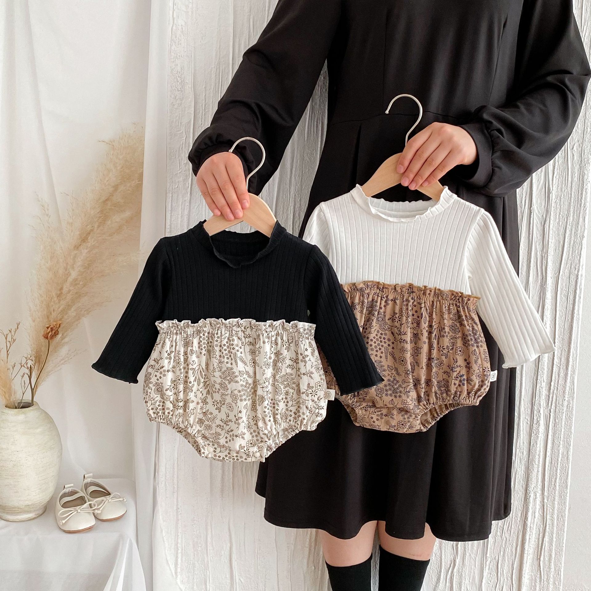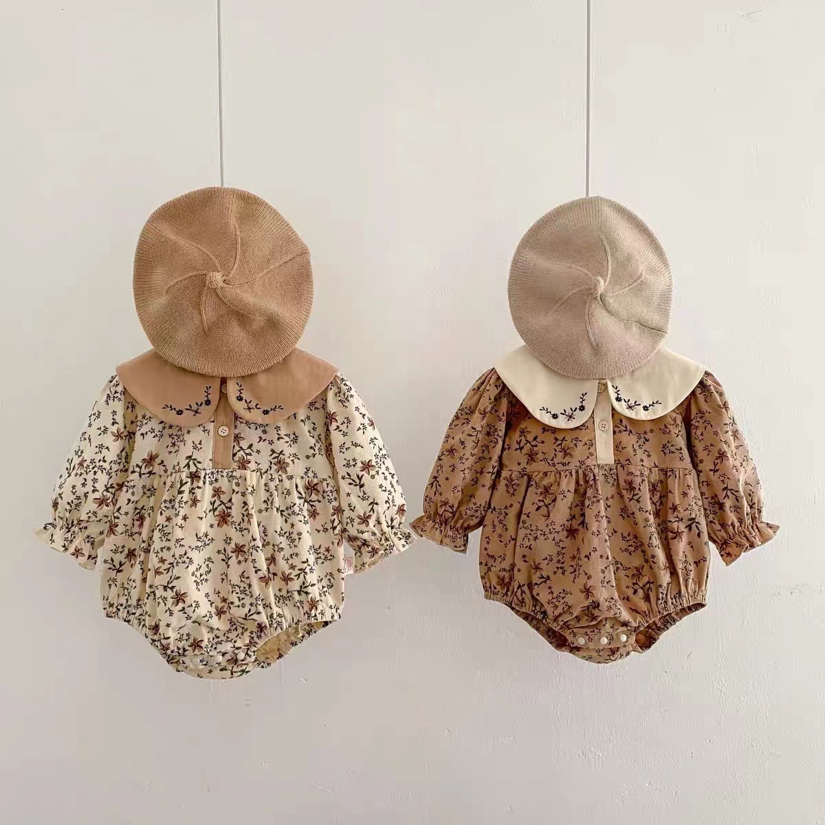 Ins春ベビーベビー襟折り襟ロンパースロンパース生児小清新女宝宝秋連体登服
