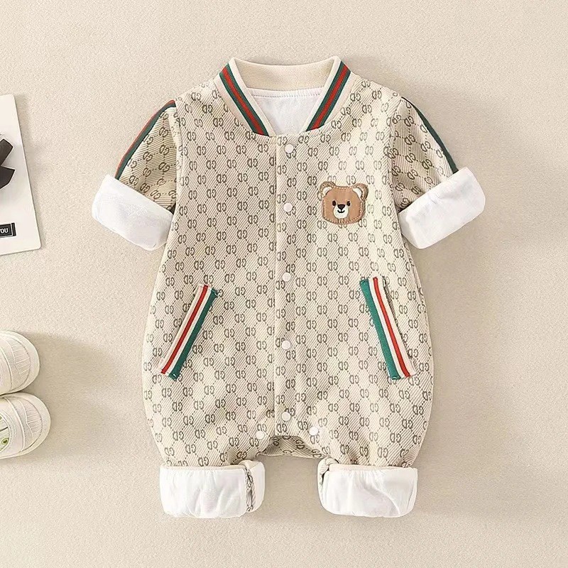 ベビー服A類舒毛綿熊巴比かわいい赤ちゃんが赤ちゃんを這って服を着ています。