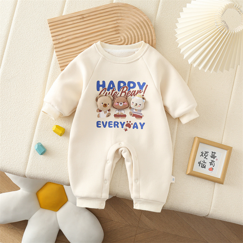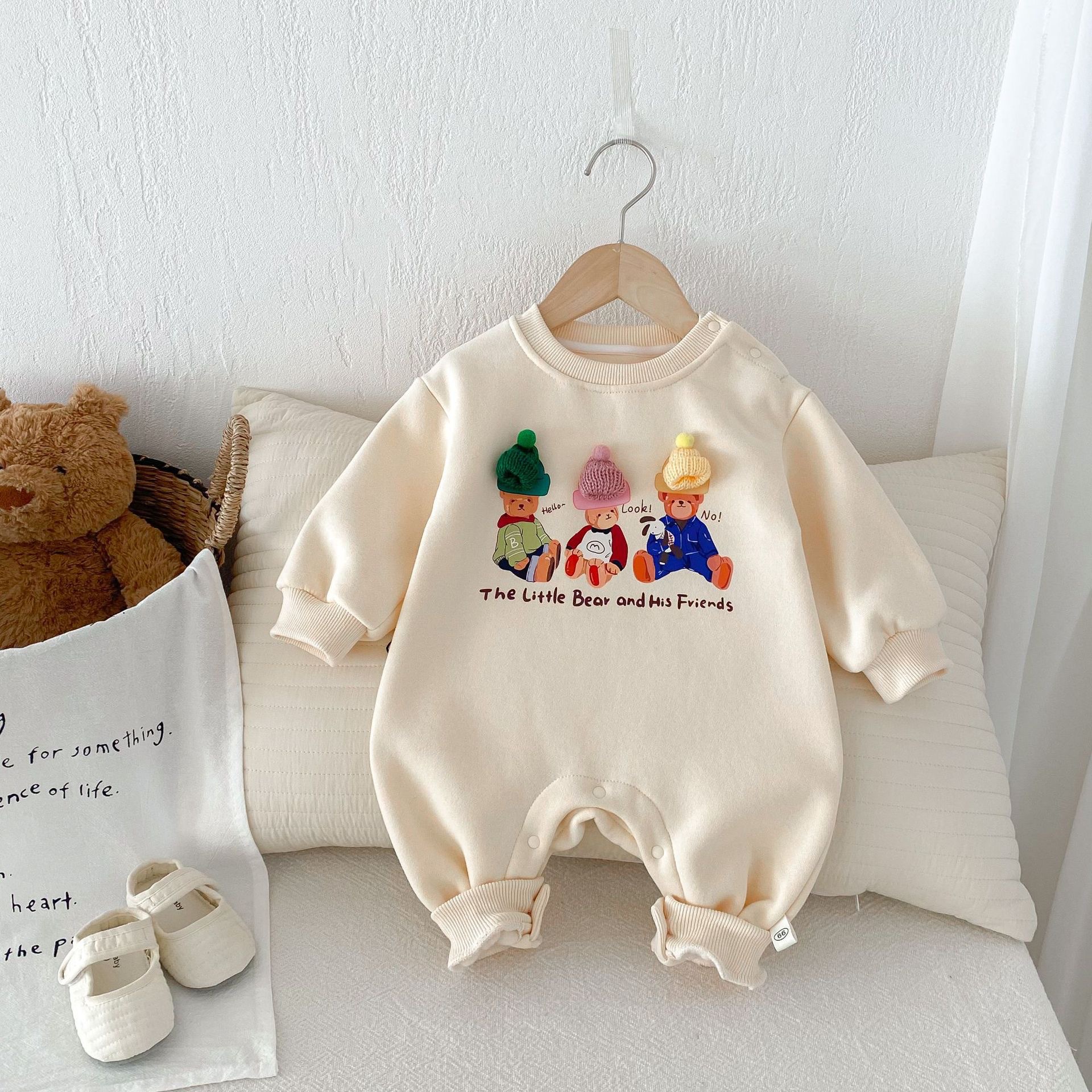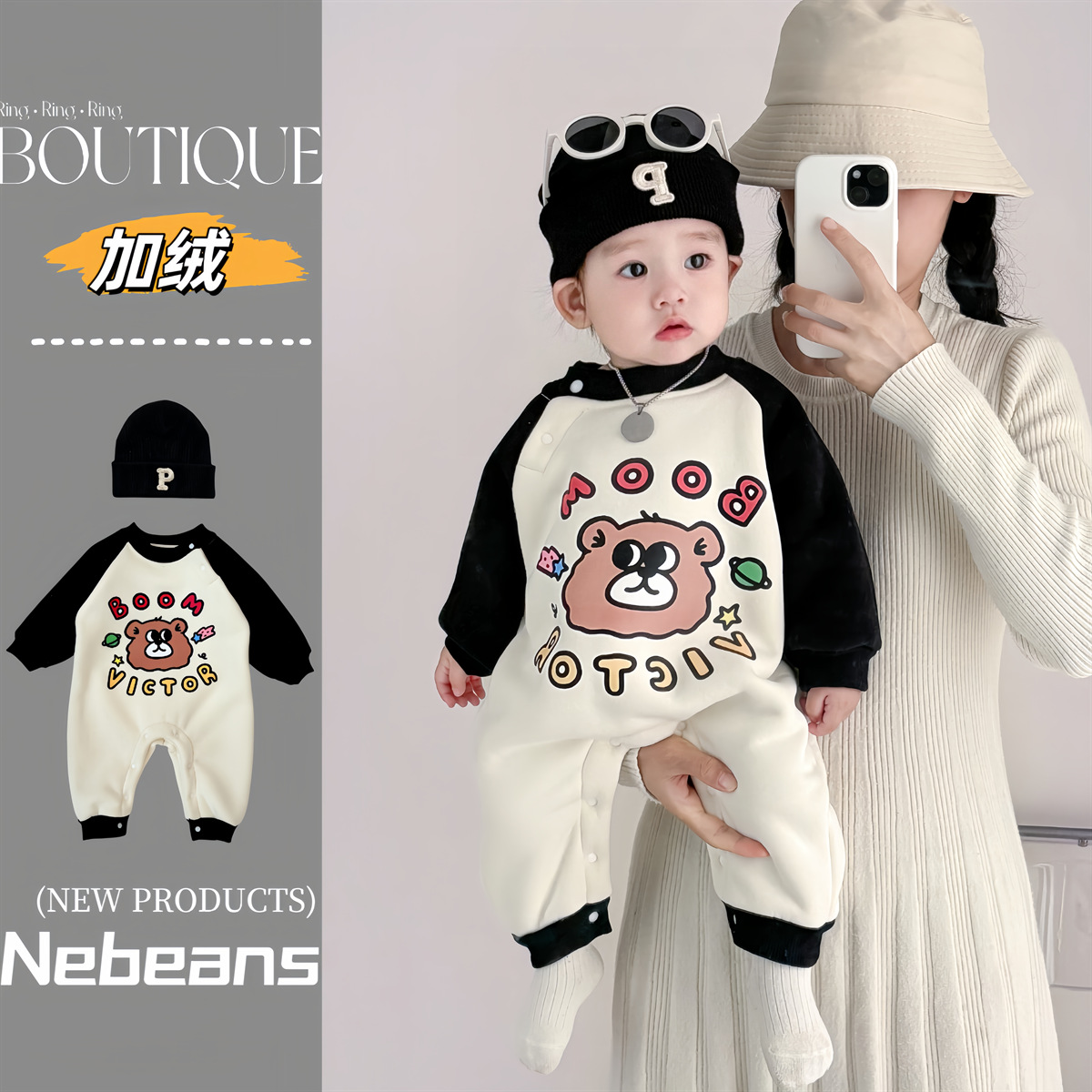 24秋冬ファッションベビー服男女宝新生児ベルベット保温ジャンプスーツ外着ベアービクター
