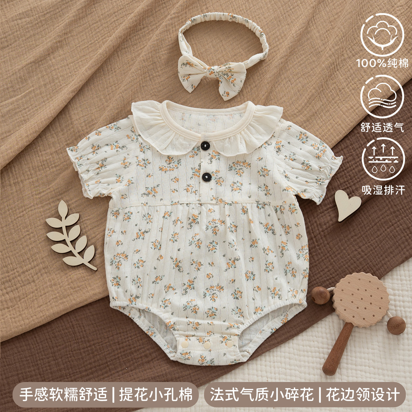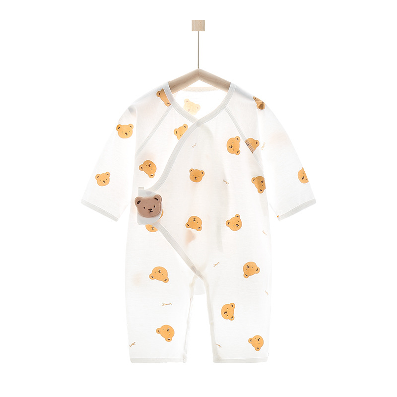 2025年ベビー夏服新生児男女兼用ベビーロンパースくま柄ベビー服半袖三角ロンパースハイハイ服