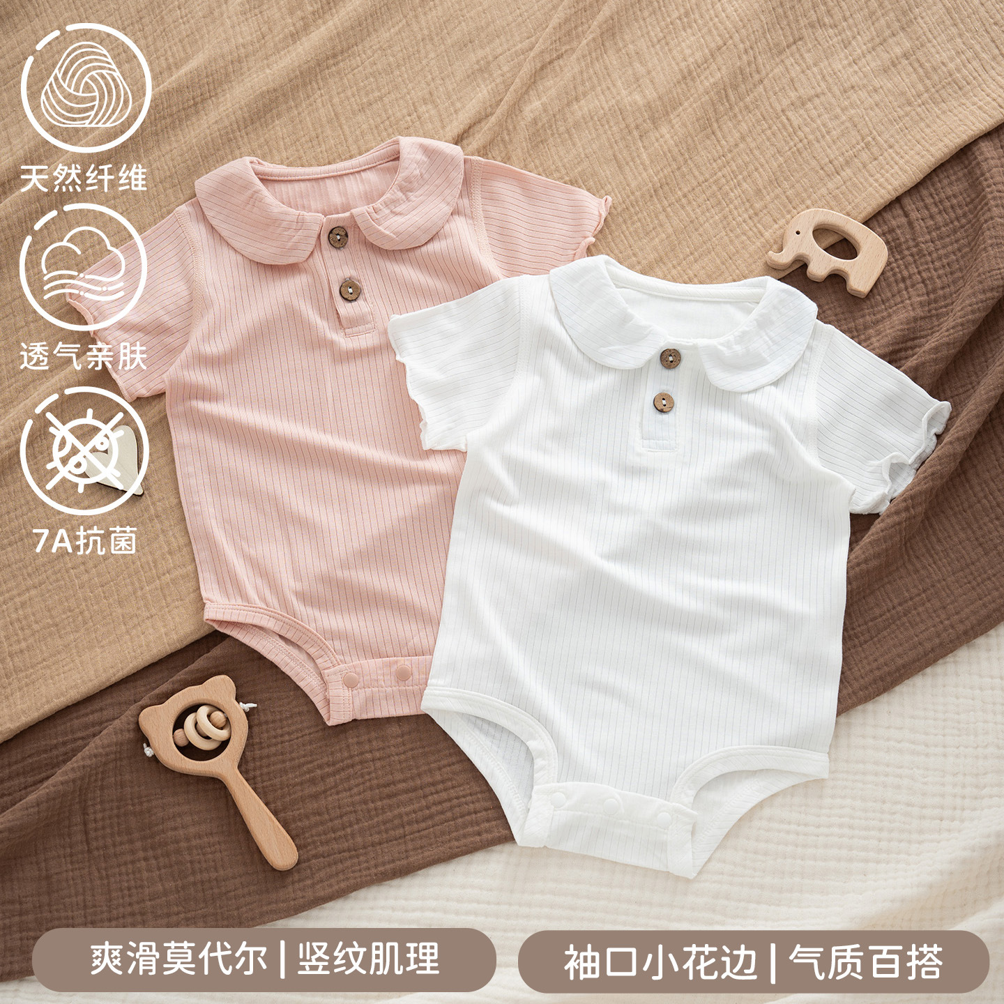 赤ちゃんの夏の超薄型半袖モーデールの子供の襟のお尻の服はシンプルでかわいい風の赤ちゃんのエアコンの家の服です。